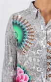 Fermeture boutonnée devant. Imprimé "mandalas" et broderie de la marque au dos.