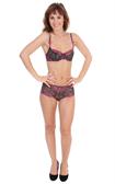 Forme Boxer, taille basse, se portant aux petites hanches. La culotte St Tropez offre beaucoup de transparence et affine les hanches.Tulle brodé, empiècement maille imprimée à la ceinture. Fond doublé coton. Papillons délicatement posés sur les hanches.